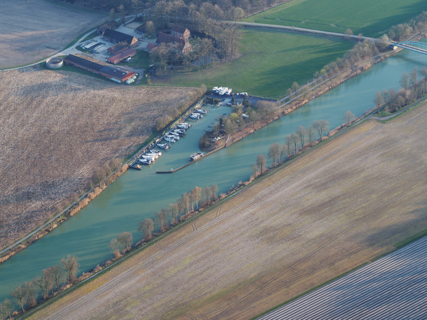 Kurz vor Senden liegt der Hafen des Yachtclubs Tomberge e.V. Schön sah er aus aus der Luft.