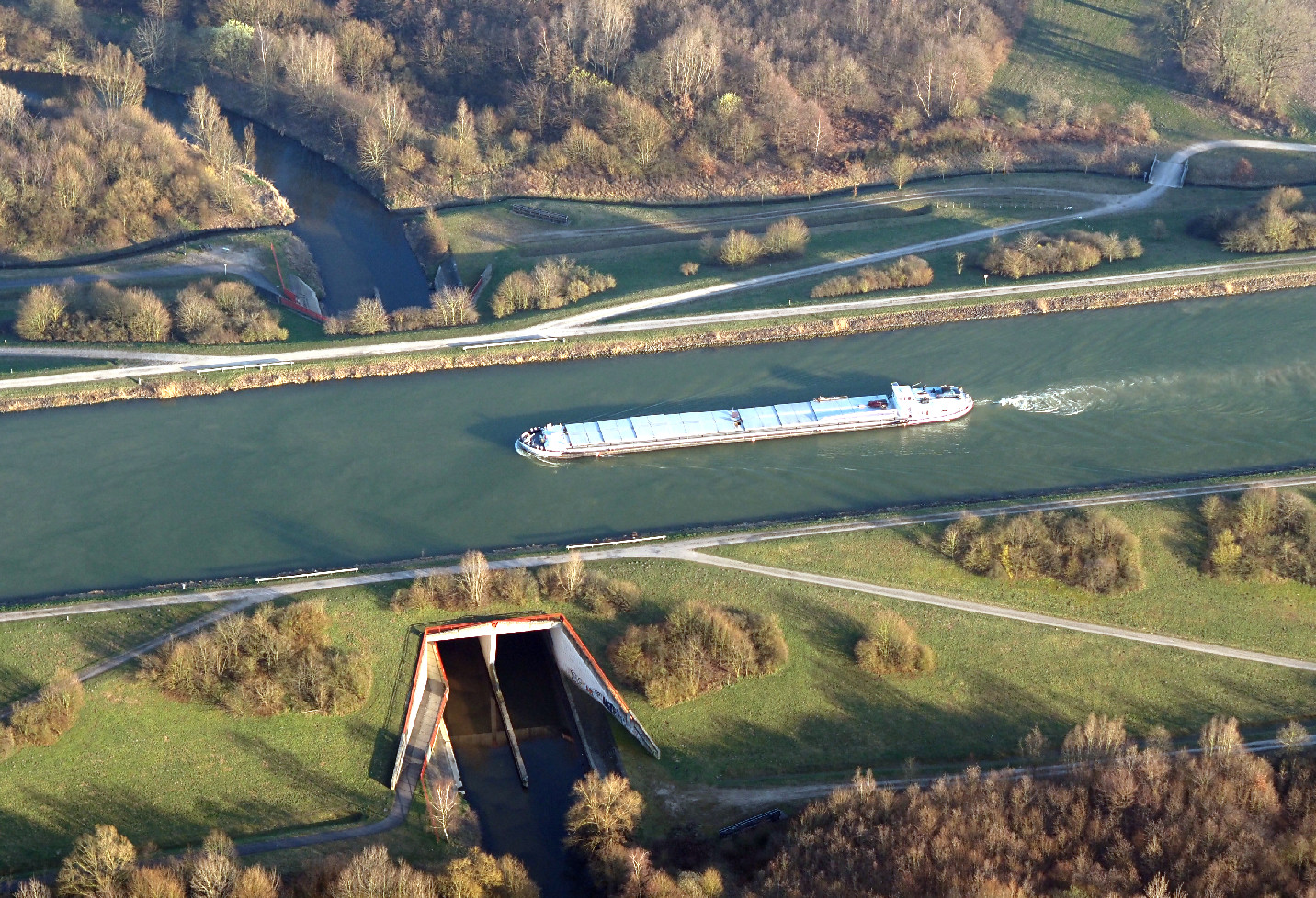 Ungefähr an der Schlieker-Brücke über den Dortmund-Ems-Kanal,