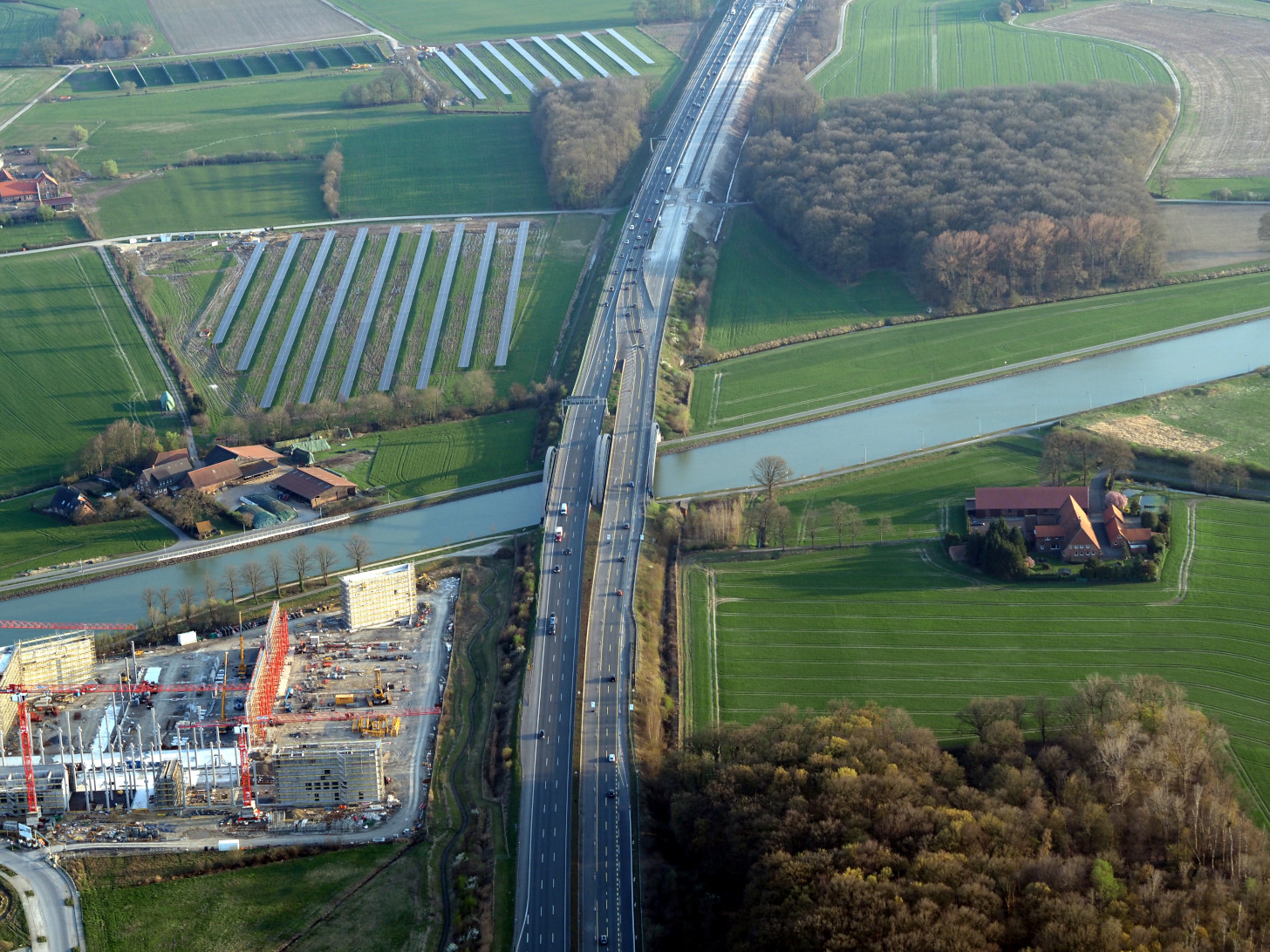 Direkt hinter der Brücke der A1 über den Dortmund-Ems-Kanal beginnt die Baustelle, die